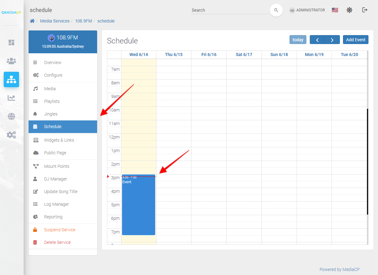 Allereerst moet je bepalen wat er zou moeten worden afgespeeld en controleren wat er is afgespeeld. Je kunt controleren wat er is afgespeeld door de Afgespeelde geschiedenis van AutoDJ te bekijken. Bepaal wat er had moeten worden afgespeeld. Controleer je schema om te zien welk evenement had moeten worden afgespeeld en welke afspeellijst aan het evenement is toegewezen. Ga naar de betreffende service en selecteer Schema in de zijbalk. Zoek uit welk evenement was gepland. Selecteer het evenement en controleer de configuratie ervan.
