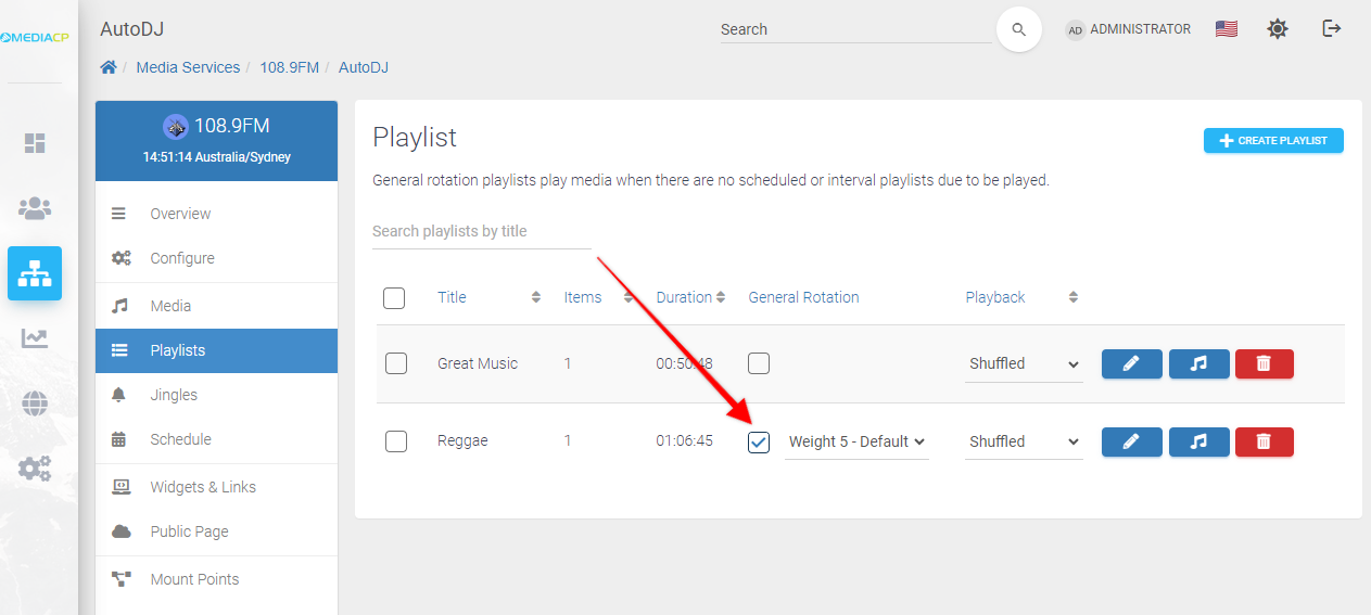 Als er niets is ingepland, zal AutoDJ je algemene rotatie afspelen