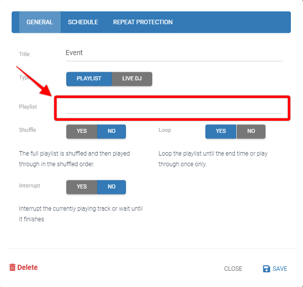 Wijs de beoogde afspeellijst toe aan het evenement.