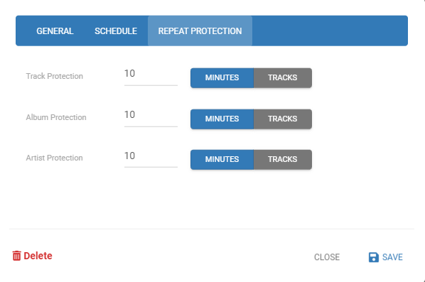 Bij het instellen van herhaalbeveiliging is het belangrijk om het aantal artiesten, albums en nummers binnen de afspeellijst of het evenement te controleren. Als je bijvoorbeeld artistieke beveiliging hebt ingesteld op 10 nummers, maar niet genoeg artiesten in je afspeellijst hebt, werkt het niet effectief. Voor meer informatie over uitzenden met AutoDJ, raadpleeg onze Audio Broadcasters Guide.